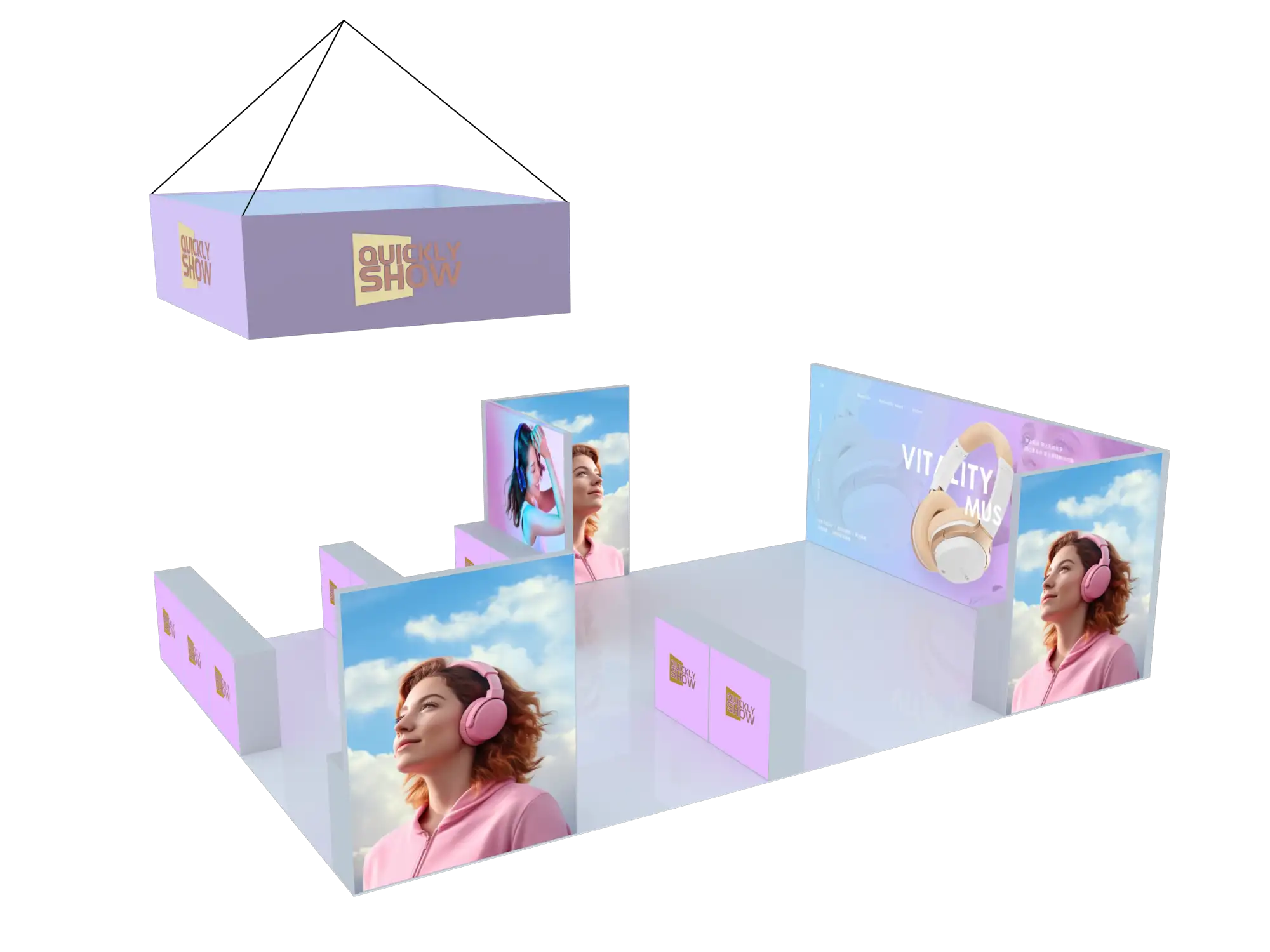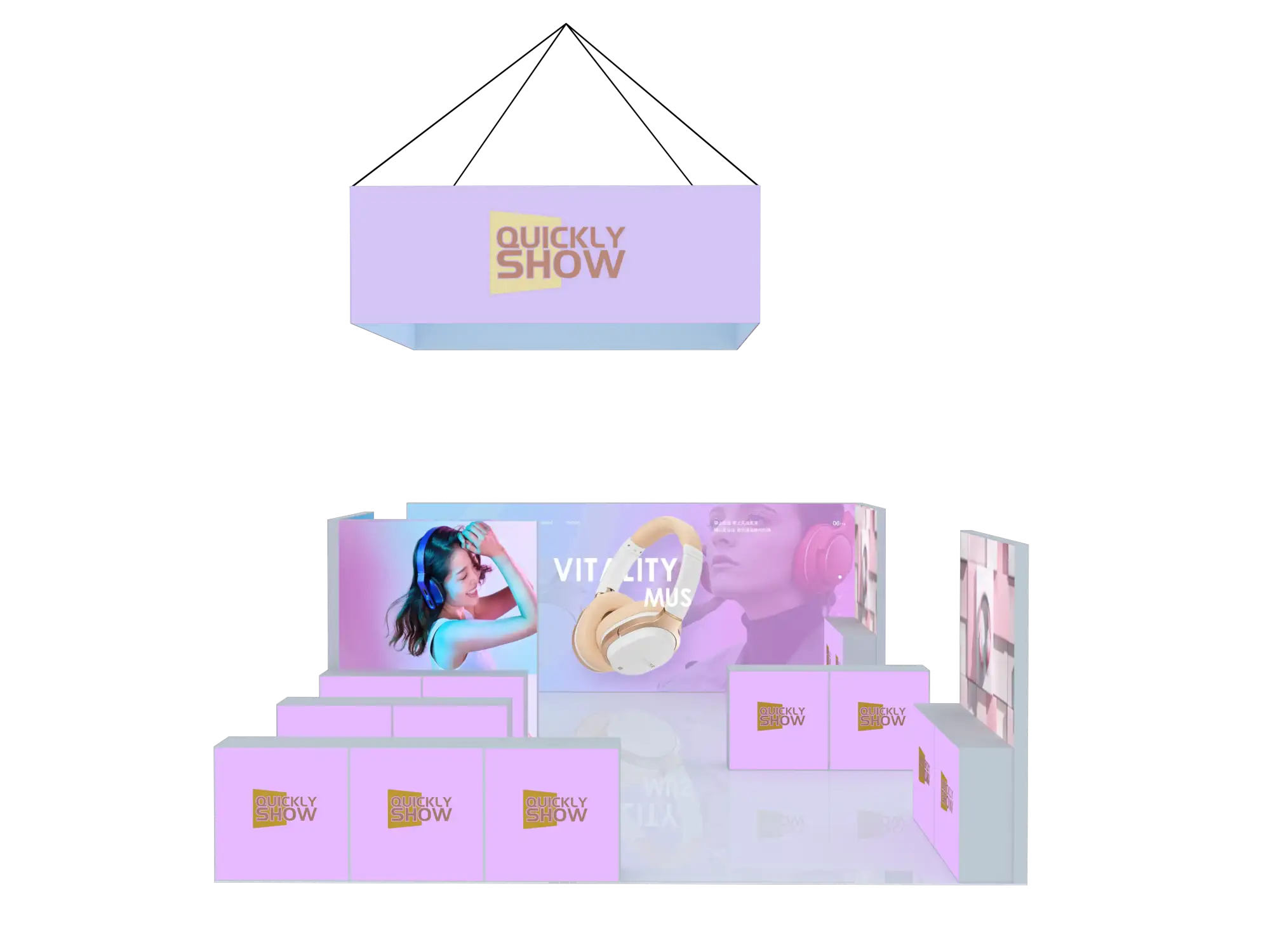 From product showcases to corporate branding zones, the QuicklyShow 20x30ft LED booth combines modern aesthetics, efficient storage, and high-impact lighting performance—a complete one-stop solution for professional trade show marketing.