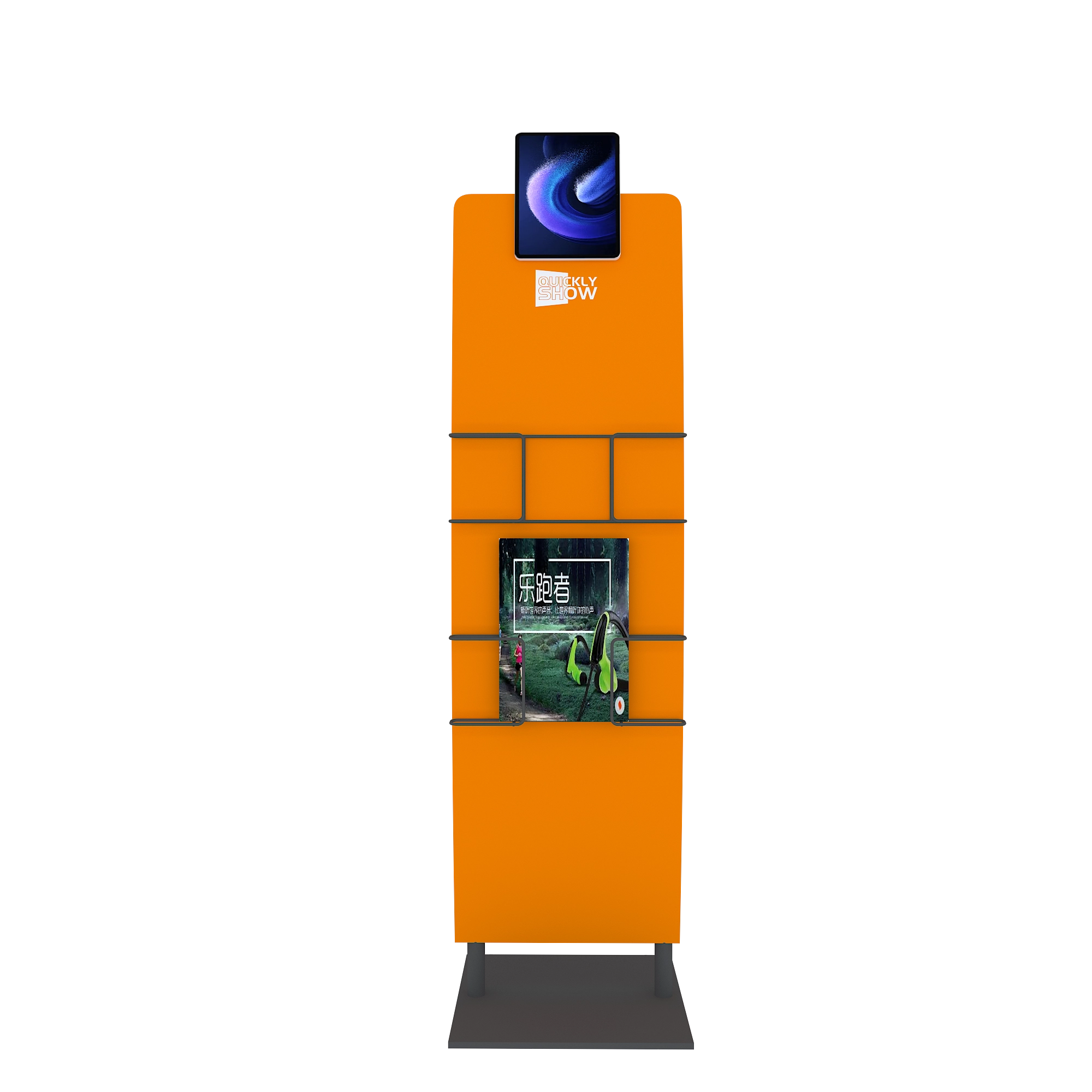 Showcase your brand with style and functionality. This sleek and modern stand combines an integrated iPad holder with a spacious literature rack, perfect for displaying brochures, catalogs, or flyers at trade shows, exhibitions, and retail environments. The lightweight tension fabric design ensures quick setup and a clean, professional look. Portable, durable, and easy to assemble  it’s the perfect all-in-one solution to engage visitors and organize materials.